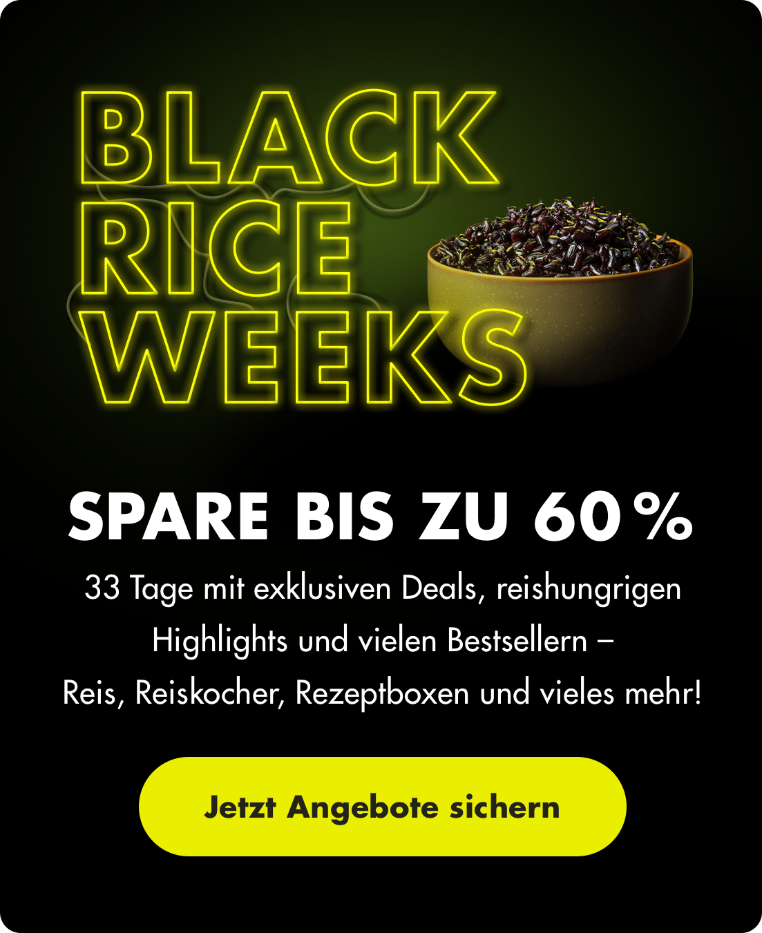 Bei unseren Black Riceweeks profitierst du dieses Jahr nicht nur von bis zu 40 % Rabatt auf unsere Bestseller, sondern kannst dich auch täglich auf neue, exklusive Deals freuen.