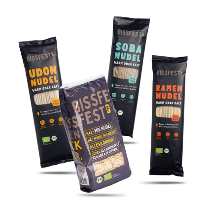Ramen Nudeln, Udon Nudeln, Mie Nudeln und Soba Nudeln sind absolute Klassiker in der asiatischen Küche. Aber auch Reisnudeln haben in großen Teilen Asiens einen hohen Stellenwert. Die Authentizität unserer Produkte ist uns sehr wichtig. Daher sind alle unsere Asia Noodles von hoher Qualität und haben einen exzellenten Geschmack. Der Großteil der Nudeln hat Bio-Qualität und alle unsere asiatischen Nudeln sind vegan und ohne Zusätze. Hört sich gut an? Dann bestell dir Asia Nudeln direkt in unserem Online Shop.