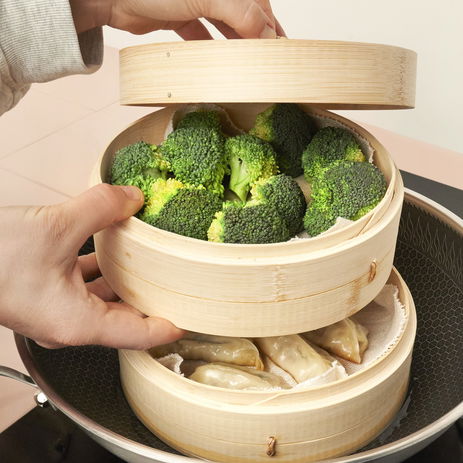 Mit dieser traditionellen Art der Reiszubereitung kannst du nicht nur Reis, sondern auch gleichzeitig andere Köstlichkeiten wie Dim Sum, Gemüse, Fisch oder Fleisch mitgaren. Unser Bambusdämpfer hat nicht nur einen Korb, er glänzt direkt mit gleich 2 Körbchen aus widerstandsfähigem Bambus!