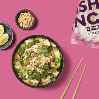 Reisnudeln haben vergleichsweise wenig Fett und wertvolle komplexe Kohlenhydrate, die vom Körper langsam verarbeitet werden und daher lange satt machen. Sie sind außerdem nicht nur glutenfrei sowie vegan, sondern auch nährstoffreich und reich an B-Vitaminen, Magnesium und Mineralstoffen.