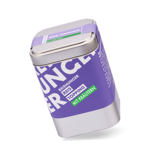 Intensiver Genuss? Geschmacksbooster ohne Unfug! Natürlich verzichten wir wie gewohnt nicht auf beste Qualität: Unser Topping besteht aus besten Gewürzen und feinsten Kräutern - natürlich in Bio-Qualität, vegan und glutenfrei. Einfach Dose auf, Topping drüber und genießen!