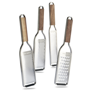 Klingen? Messerscharf! Mit den photo-geätzten Küchenreiben von Microplane werden Lebensmittel geschnitten und nicht zerrissen – ganz ohne Kraftaufwand und für ein intensives Aroma. Material? Hart wie Stahl! Die Reiben Made in USA sind aus extra robustem Edelstahl und die Griffe aus hochwertigem Walnussholz gefertigt. Qualität? Premium! Als Hersteller von Küchenwerkzeug glänzt Microplane durch jahrzehntelange Erfahrung.