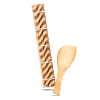 Unsere Sushi Bambusmatte eignet sich sowohl für Sushi Anfänger:innen als auch für bereits etablierte Sushi-Meister:innen. Sie überzeugt mit einer hochwertigen Verarbeitung aus Bambusholz. Um ganz genau zu sein: Sie besteht aus runden, schmalen Bambusstäbchen. Mit einer Fläche von 24x24cm hat unsere Sushi Rollmatte die perfekte Größe zum Rollen von Sushi. Außerdem wird bei ihr noch ein Löffel mitgeliefert, mit dessen Hilfe der Reis auf die Matte verteilt werden kann. Worauf wartest du? Sushi Matte kaufen und los rollen!