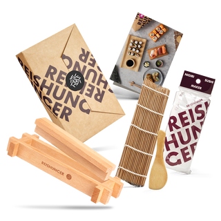 Du willst direkt noch mehr Sushi Zubehör für dein Zuhause? Dann empfehlen die unsere Sushi Equipment Box XXL. In der XXL-Version befindet sich noch eine Hangiri Holzschüssel, um deinen Sushi Reis noch besser zuzubereiten!