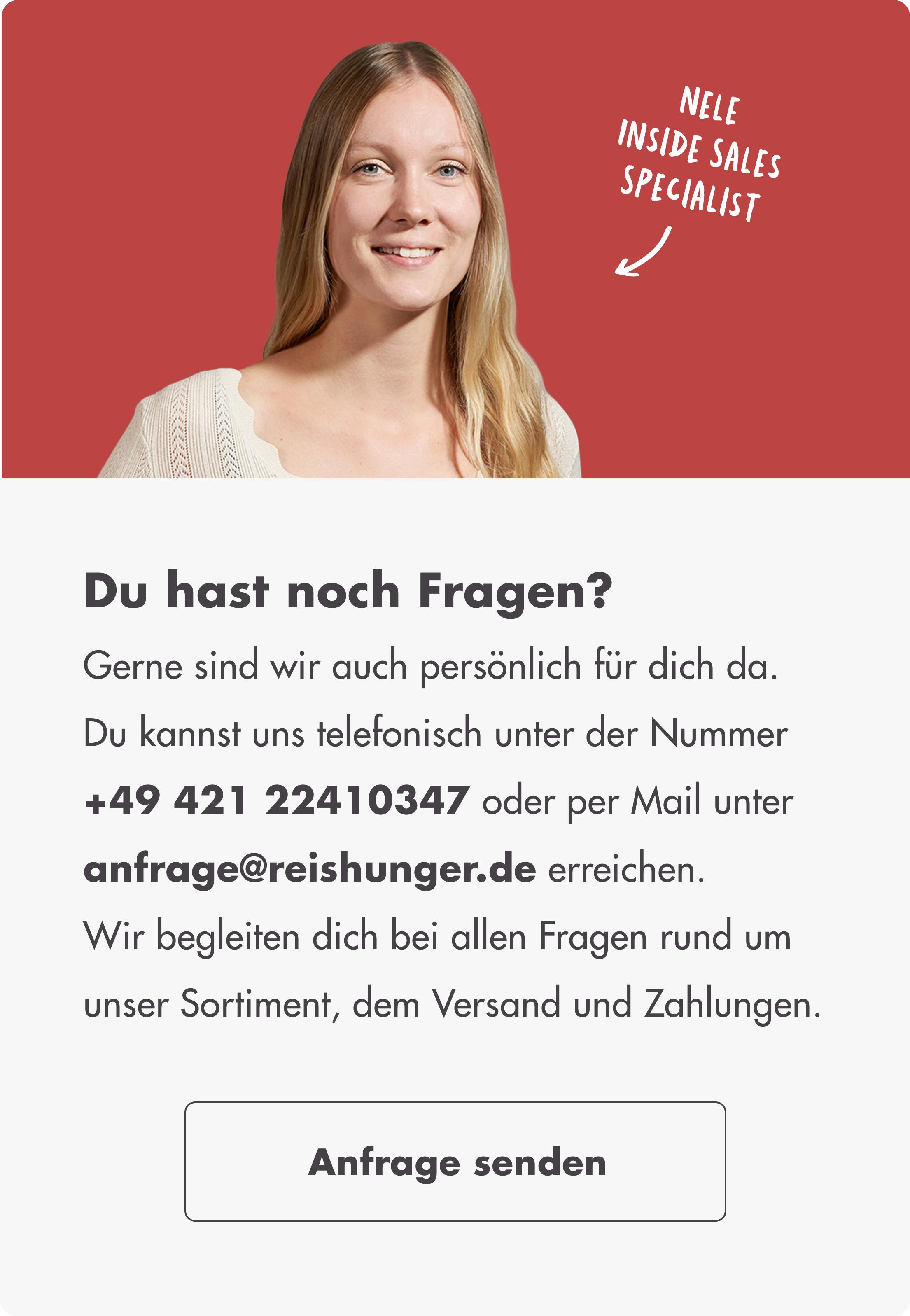 Verzichte auf fade Schokolade und den immer gleichen langweiligen Kleinigkeiten – bei Reishunger findest du ganz sicher das ideale Geschenk für die ganze Firma! Du willst mehr entdecken oder hast Fragen? Dann sende uns eine Mail an [email protected]. Wir helfen dir das passende Präsent für dein Team, Kund:innen oder Geschäftspartner:innen zusammenzustellen.
