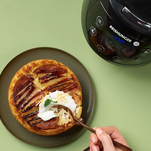 Im Digitalen Reiskocher lässt sich übrigens nicht nur hervorragend kochen. Auch zum Backen von Süßem und Salzigem gibt es einen eigenen Modus. Probier’ doch mal unser Rezept für saftigen Bananenkuchen mit Walnüssen aus oder backe ganz einfach einen leckeren Apfelkuchen mit Zimt im Reiskocher. Auch Deftiges ist für den BACKEN Modus kein Problem. Bereite doch deine nächste Gemüsetarte oder vegane Knoblauchschnecken für den nächsten Grillabend ganz einfach im Digitalen Reiskocher zu.