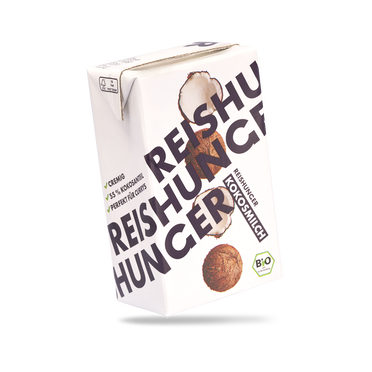 Reisflocken mit dem Reisdrink und der Kokosmilch zusammen in einen Topf geben und aufkochen. Danach auf mittlere Hitze stellen und köcheln lassen.