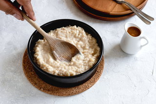 Die Milch, die du für die Zubereitung von Milchreis benötigst, kann im Topf schnell anbrennen. Durch stetiges Rühren verhinderst du, dass die Milch am Boden des Topfes anbackt. Achte beim Milchreis kochen also immer auf eines: Rühren, rühren, rühren.