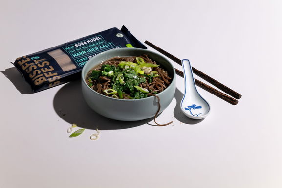 Soba Nudeln haben in Japan eine lange Tradition. Für die ursprüngliche Herstellung der asiatischen Buchweizennudel wurden Sobameister ausgebildet, die am Ende ihrer Ausbildung die besondere Knettechnik perfekt beherrschten. Unsere bissfest Soba Nudeln sind zwar nicht von Hand geknetet, dafür aber durch ihren Mix aus Weizen und gerösteten Buchweizen einfach himmlisch. Der herb-nussige Geschmack passt sowohl zu kalten Suppen oder Salaten als auch heißen Brühen und Wok Gerichten.