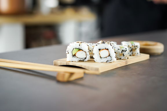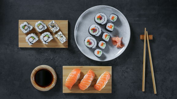 Wie heißt es so schön: Das Auge isst mit. Liebevoll zubereitet und in mundgerechte Häppchen geschnitten sind die kleinen Leckerbissen schon alleinstehend ein Augenschmaus. Um Sushi stilecht zu genießen, sind Hashi (Essstäbchen) mit zugehöriger Bank pflicht.