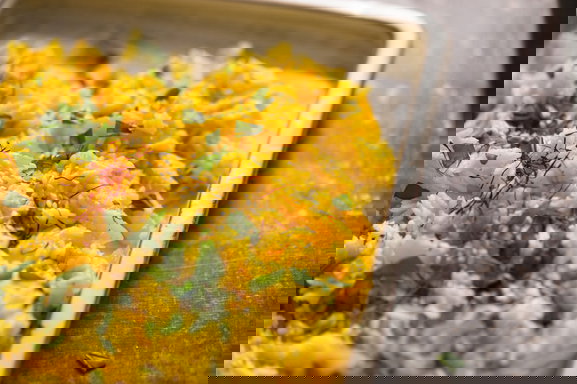 Nutzt du Kurkuma zum Würzen, verleihst du deinen Gerichten nicht nur eine besondere Geschmacksnote, sondern auch eine schöne gelbleuchtende Farbe. Daher wird Kurkuma auch häufig zum Färben genutzt.