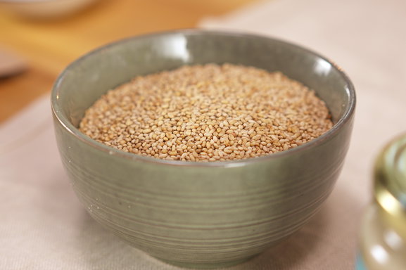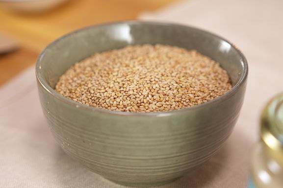 - Wenn du schon gerösteten Sesam, wie z.B. den Reishunger Sesam, besitzt, musst du ihn nicht mehr anrösten. Ansonsten kannst du den Sesam in einer Pfanne unter wiederholendem Umrühren kurz anrösten.