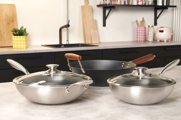 Woks aus Edelstahl sind sehr robust und hitzebeständig. Sie können die Hitze dadurch besser an die Zutaten im Wok übertragen. Es kommt aufgrund der dickeren Wände nicht zu Verformungen.