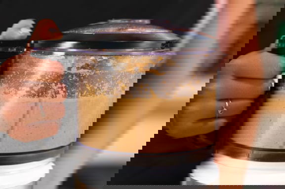- Nachdem die Cashewkerne abgekühlt sind, gibst du sie in einen Mixer und zermahlst sie. Mixe diese so lange durch, bis das Mus schön cremig geworden ist.