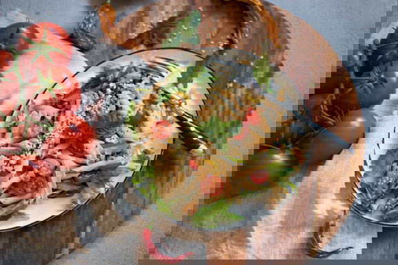Besonders bei wärmeren Temperaturen ist ein Nudelsalat genau das Richtige! Ob auf kalten Buffets, auf einer Party oder bei einem Grillabend mit den Liebsten – der Nudelsalat schmeckt zu vielen Anlässen. Übrig gebliebene Fusilli Nudeln eignen sich für die Zubereitung besonders gut. In Kombination mit getrockneten Tomaten, Oliven, Rucola und einem würzigen Pesto Rosso hast du ruckzuck deinen italienischen Salat fertig. Die Zutaten lassen sich beliebig kombinieren, sodass du unzählige Varianten zaubern kannst.