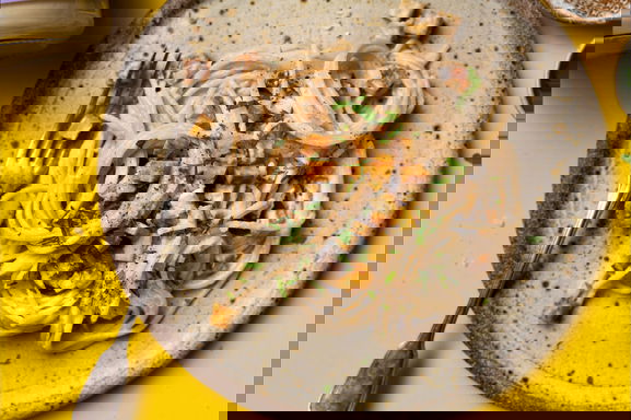 Veganes Rührei und vegetarische Carbonara