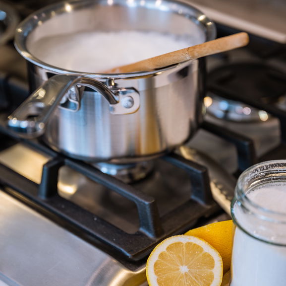 - Sojamilch in einem Topf auf ca. 75 Grad erwärmen.