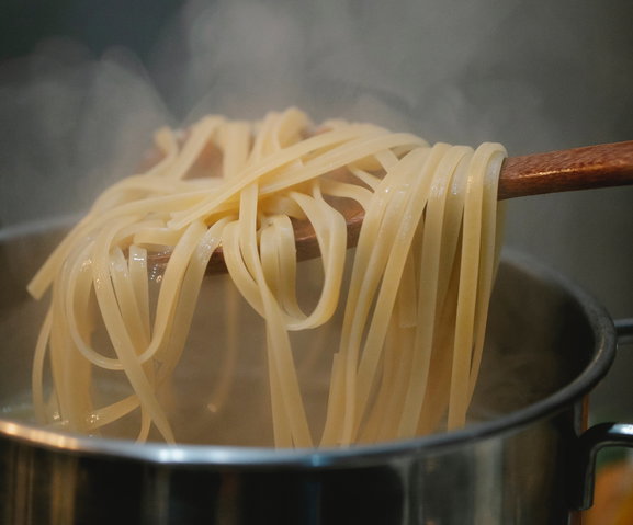 Um deine Pasta richtig zu kochen, ist die Größe des Kochtopfes wichtig. Nutze am besten einen größeren Topf, da die Nudeln während des Kochens Wasser aufnehmen und sich ihrVolumen vergrößert. Damit verhinderst du, dass die Nudeln am Kochtopf oder aneinander kleben.
