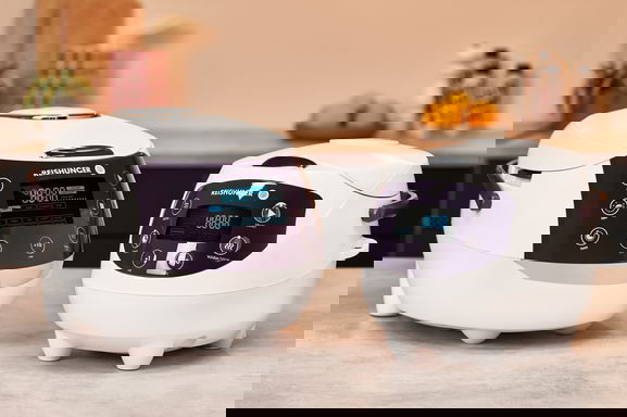 Unser Digitale Reiskocher ist ein absolutes Allroundtalent. Mit ihm genießt du immer perfekt gegarten Reis auf Knopfdruck – ganz egal ob Basmati Reis, Sushi Reis oder Jasmin Reis. Das Beste daran: du hast keinen Aufwand, kannst bis zu 8 Portionen Reis gleichzeitig kochen und auch wenn deine Gäste sich verspäten und du deinen Reis etwas später genießen willst, ist das kein Problem. Im Warmhaltemodus hält unser Digi deinen Reis bis zu 24 Stunden lang warm. Seine 12 unterschiedlichen Modi machen es dir sogar möglich super easy ganze Gerichte wie Suppen, One Pot Pasta oder Currys zuzubereiten.