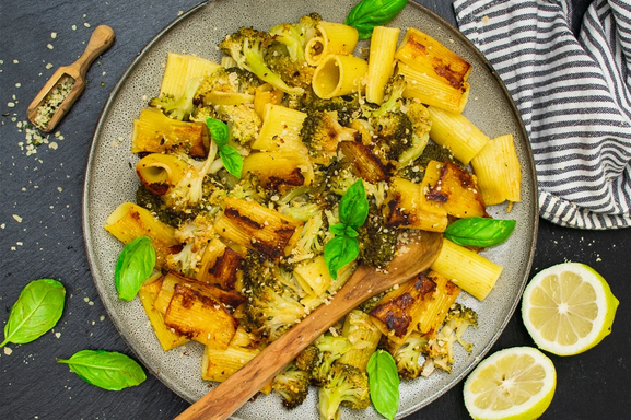 Ein cremiger Nudelauflauf mit Brokkoli – und das auch noch vegan und super unkompliziert! Hierfür im ersten Schritt die Reispasta Rigatoni aus Reis und Mais vorkochen. Währenddessen den Brokkoli in kleine Röschen zerteilen und die Zwiebeln würfeln. Danach für die Sauce Hafercuisine mit Hefeflocken sowie Zitronensaft und Gewürzen deiner Wahl vermengen. Anschließend die Zwiebeln glasig dünsten und alle restlichen Zutaten in die Pfanne geben. Kurz köcheln lassen und in eine Auflaufform geben. Toppe den Auflauf mit veganem Parmesan und gib ihn für etwa 15 Minuten in den Ofen. Das Rezept funktioniert übrigens auch wunderbar mit dem Digitalen Reiskocher.