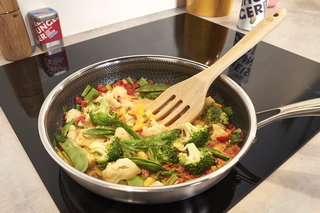 Unbeschichtete Pfannen sind für gewöhnlich sehr robust und langlebig. Sie halten vor allem hohe Temperaturen sehr gut stand – was auch zum größten Unterschied in der Nutzung einer beschichteten und einer unbeschichteten Pfanne führt. Unbeschichtete Bratpfannen eignen sich hervorragend zum scharfen Anbraten auf hoher Hitze. Du kannst sie sowohl für Bratkartoffeln mit gold-brauner Kruste, Tempura Gemüse oder auch zum Anbraten von Fleisch und Fisch verwenden. Auch saucige Speisen wie Risotto eignen sich super für die Zubereitung in unserer unbeschichteten Edelstahl Pfanne. Für empfindliche Zutaten ist eine Pfanne ohne Beschichtung eher weniger geeignet. Wichtig beim Braten bei sehr hohen Temperaturen ist es, ausreichend hitzebeständiges Öl zu verwenden.